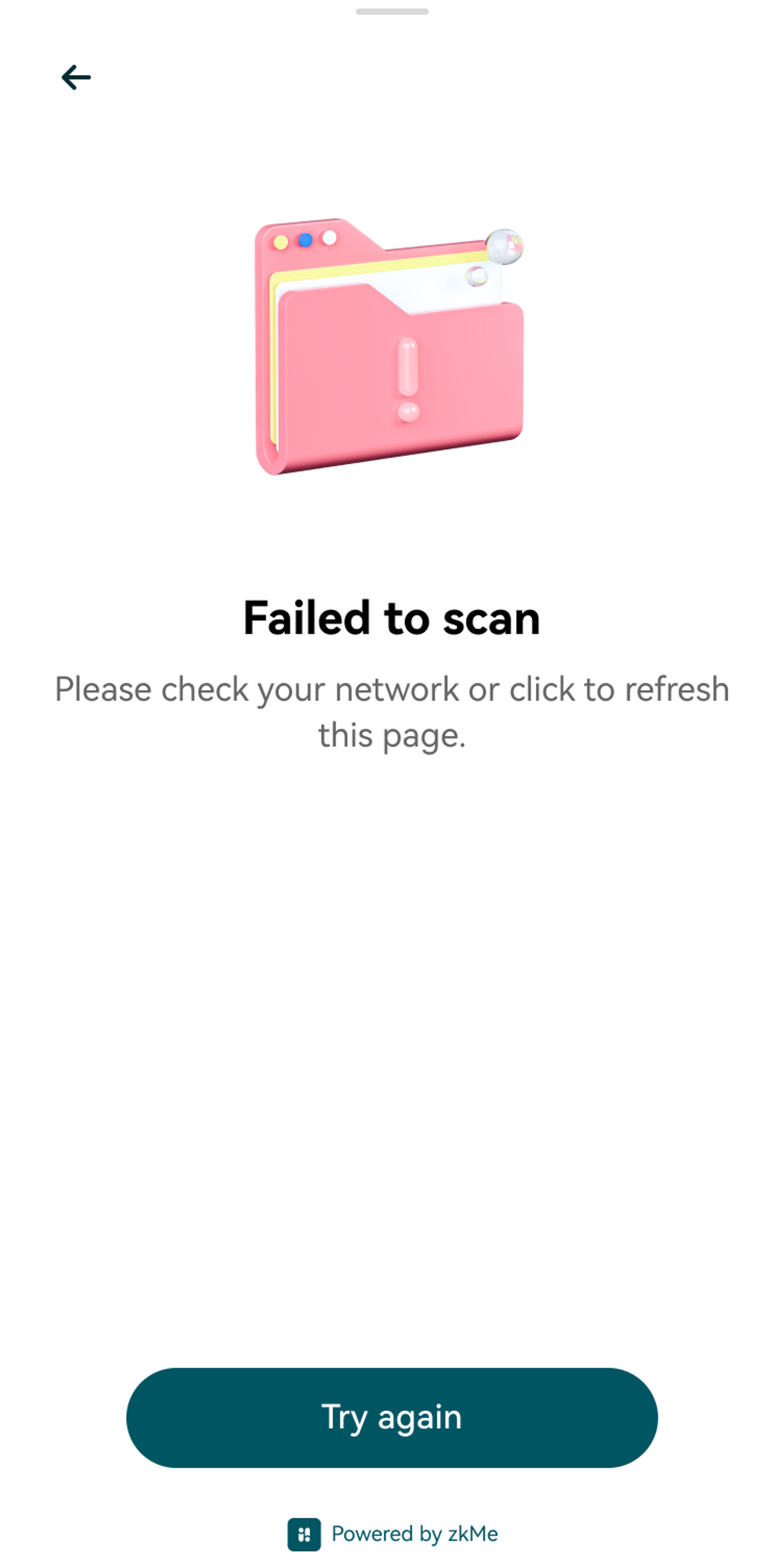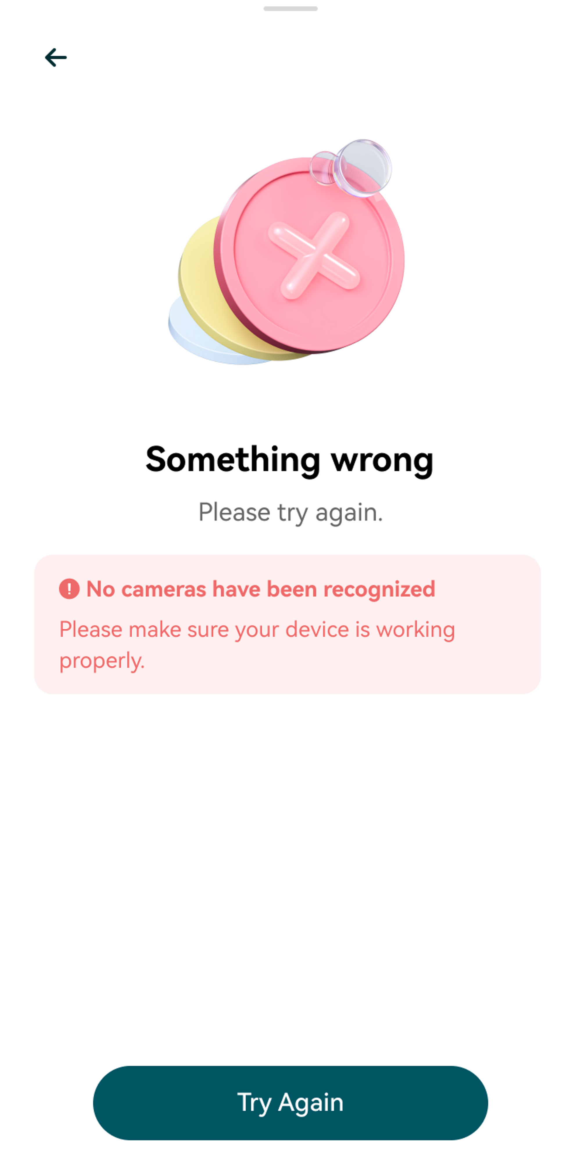 The following screen will be displayed for possible issues such as the user denying browser camera access or not having a camera on the device.