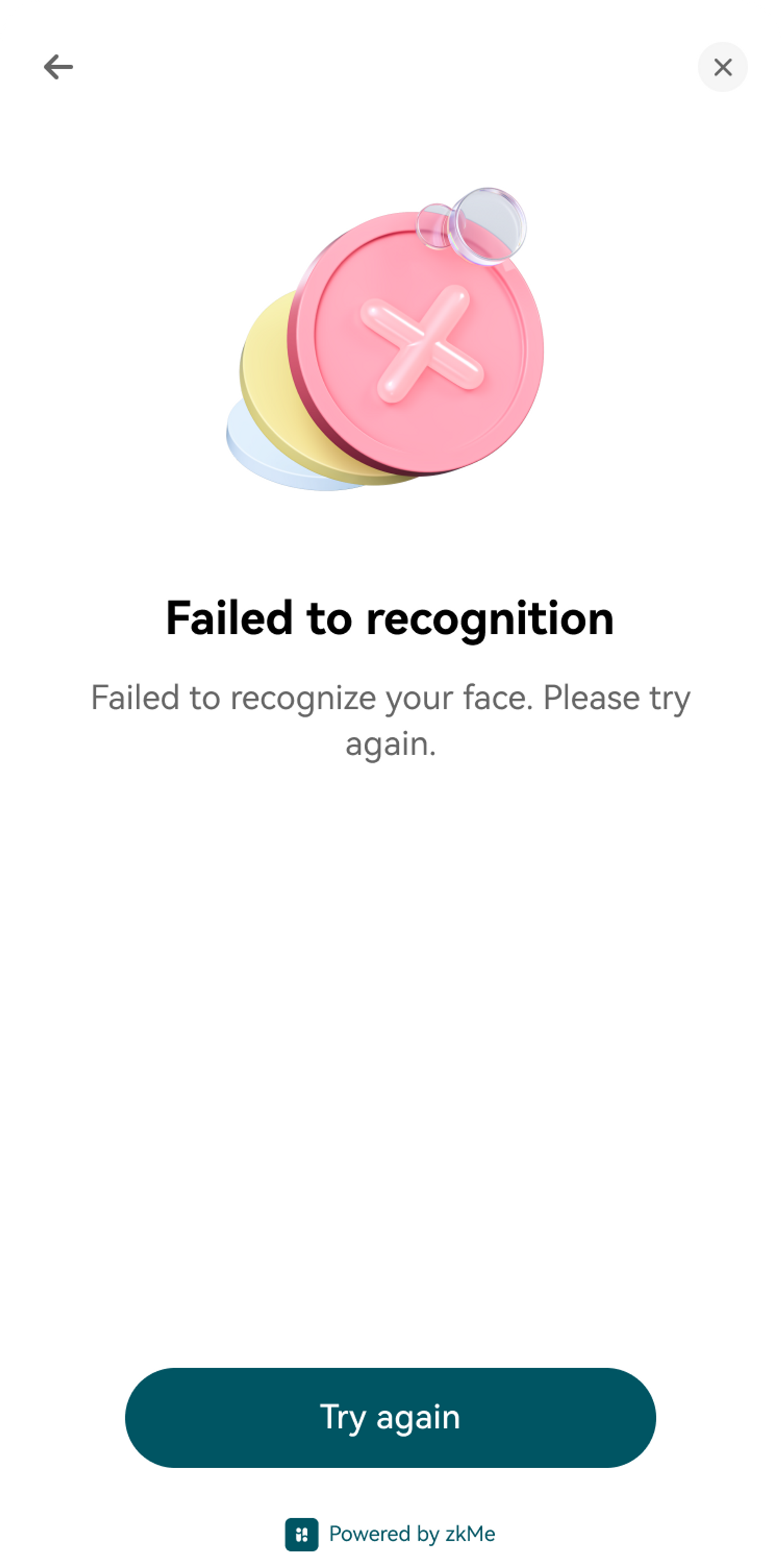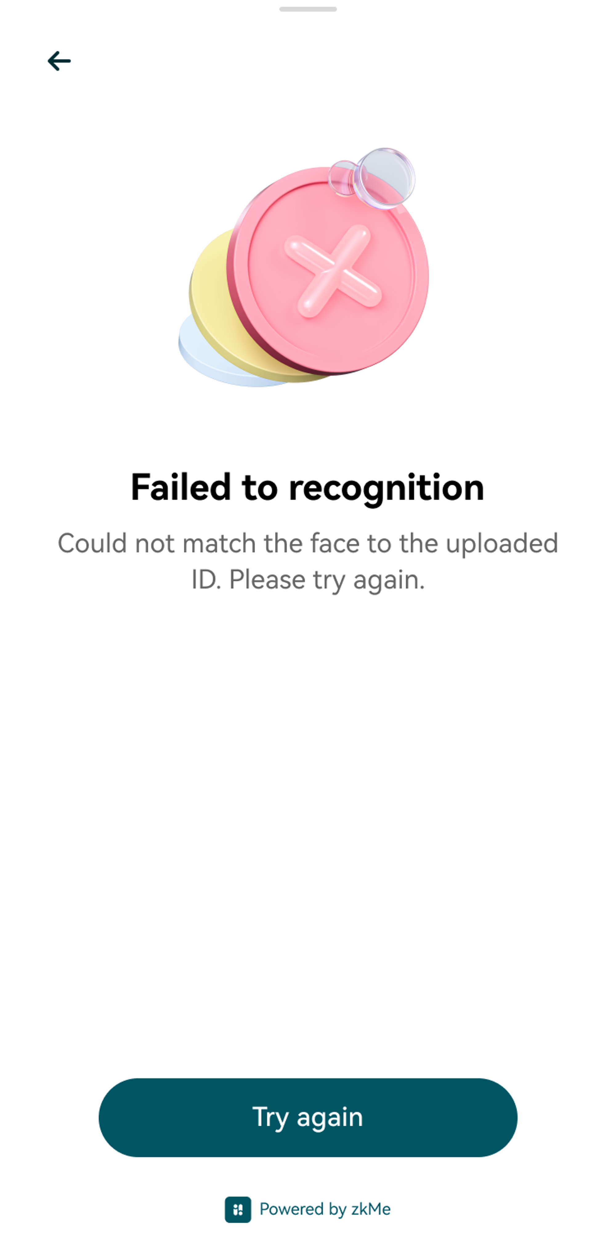 The following screen will be displayed when the face could not match the uploaded ID.