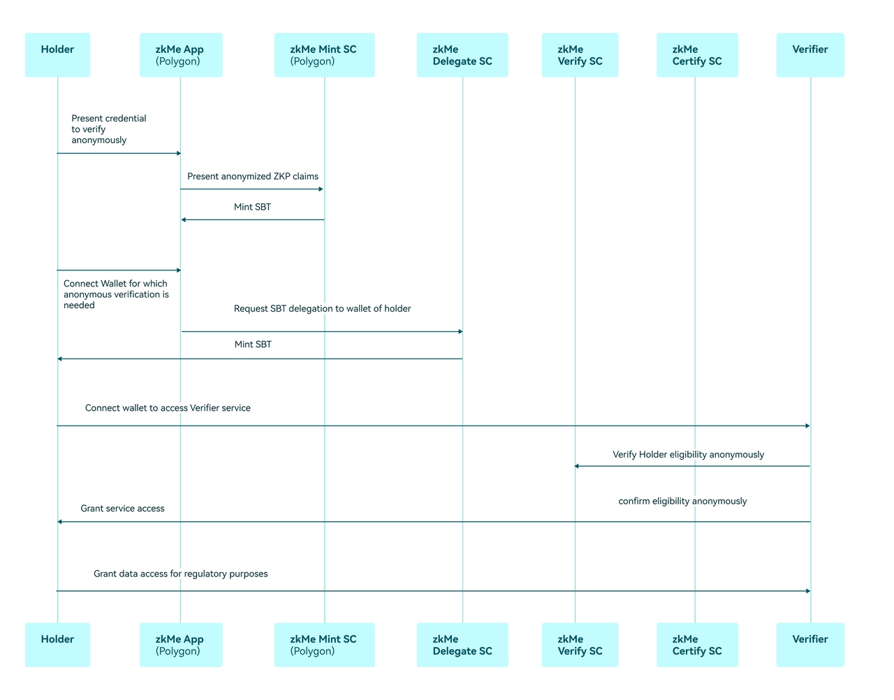 zkMe Identity Oracles are designed with regulatory compliance in mind, adhering to FATF’s 2019 recommendations for crypto KYC/AML compliance (incl. travel rule requirements), EU’s 6AML and TRF directives, and even upcoming EU MiCA and US Lummis-Gilibrand bill requirements while fulfilling international W3C DIDs, VC, and VP standards. Allowing both front ends and smart contracts to enforce due diligence requirements.