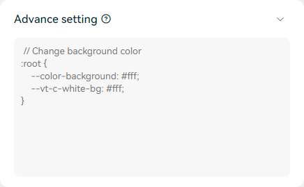To switch the background color to a gradient, we suggest updating the background of the given class name and adjusting the color attributes --color-background and --vt-c-white-bg.