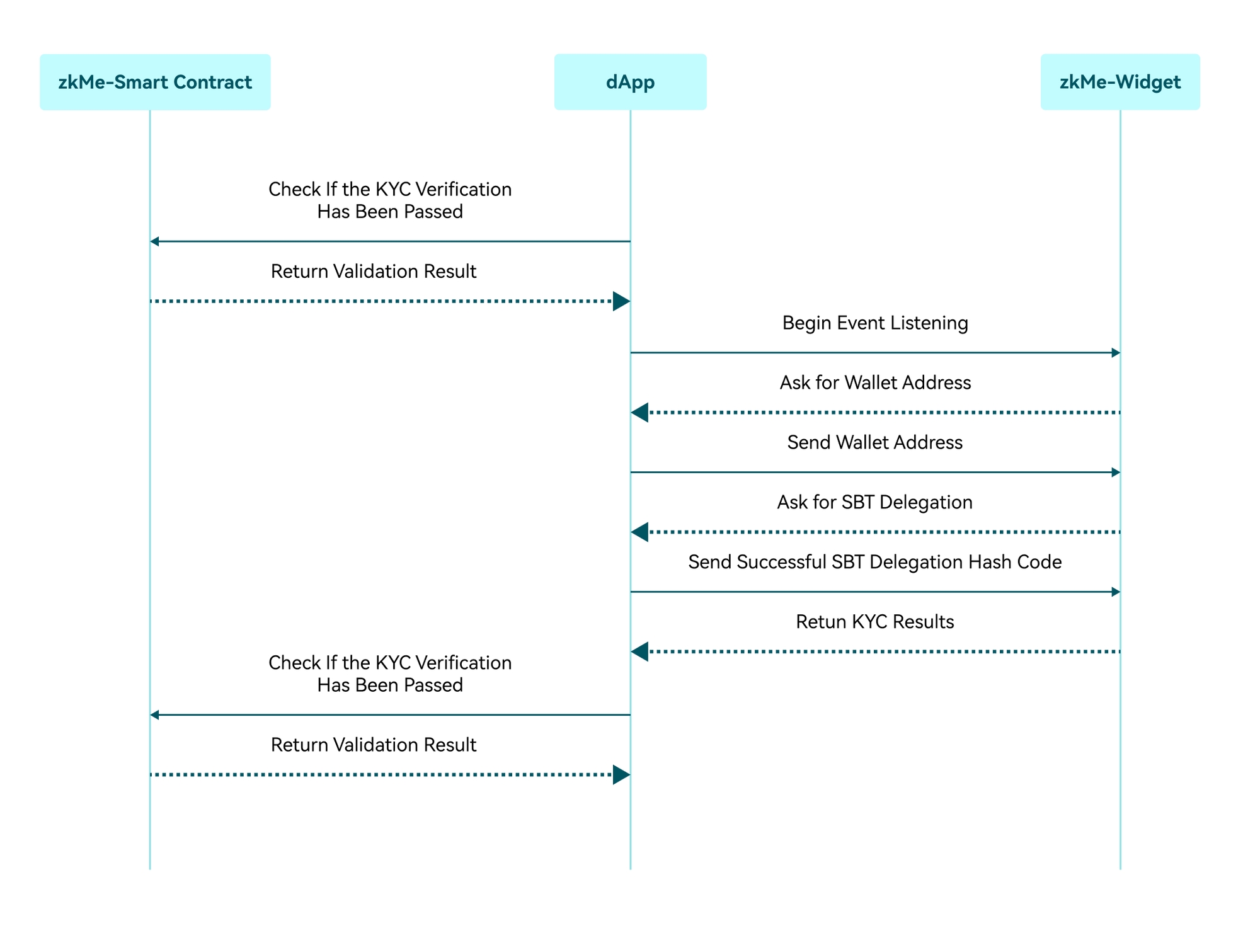 Before launching the widget, you should check the zkKYC status of the user and launch the widget when the check result is false.