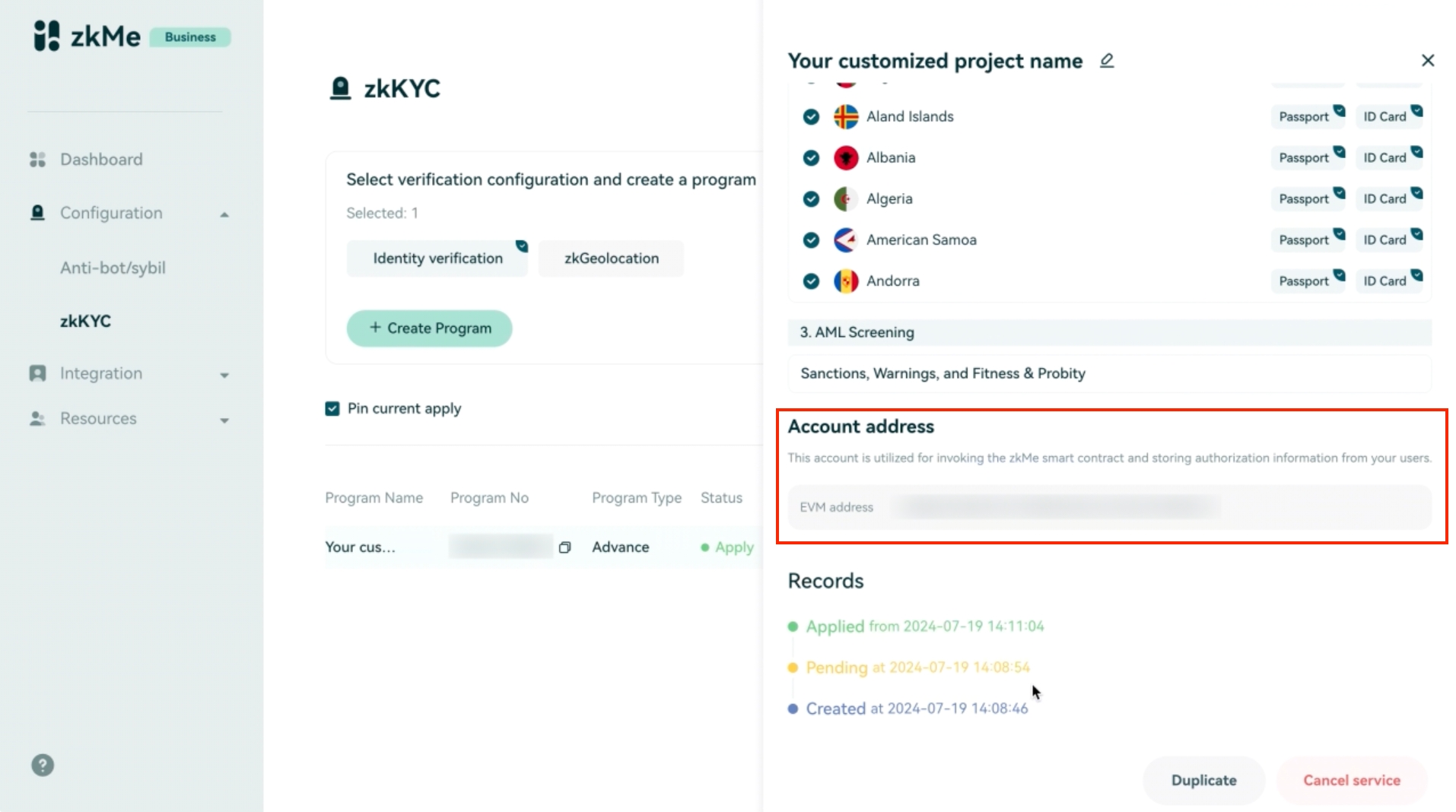 You can obtain the cooperator address after completing the "Create Program" step on the zkMe Dashboard.