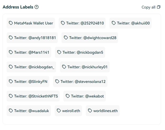 The Address Labels feature is designed to help users differentiate between various types of blockchain addresses, improving their transactional experience. With this feature, users can quickly recognize different entities like exchanges, smart contracts, and more specifically, the organization an address is associated with, such as Coinbase or Binance. It also reveals both on-chain and off-chain tags, including ENS, as well as the wallet software used, like MetaMask. This detailed labeling not only makes it easier to comprehend the addresses in question but also offers a clearer view of the blockchain environment they're engaging with.